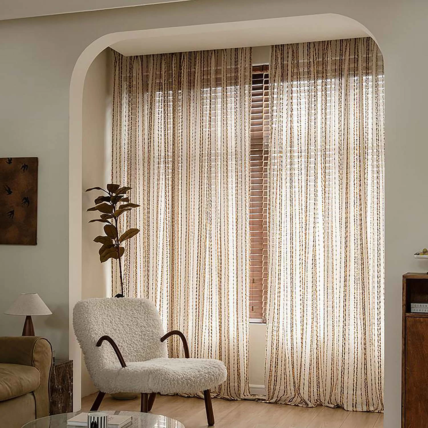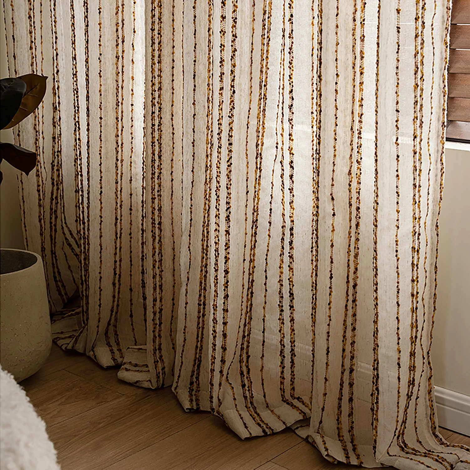 Le Rideau à Rayures Marron : une fonctionnalité translucide maîtrisée