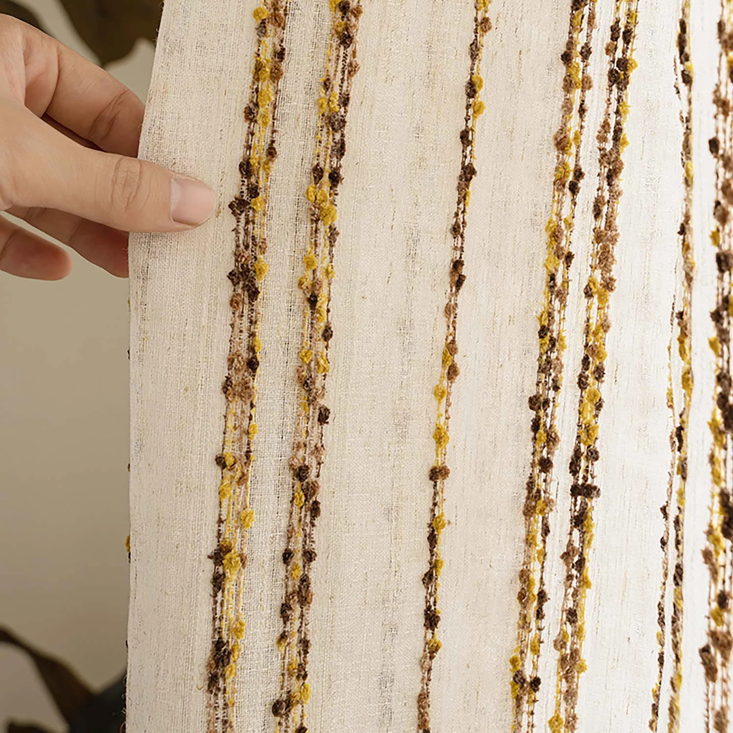 Doté d’une fonctionnalité translucide, le Rideau à Rayures Marron offre un équilibre idéal entre lumière naturelle et intimité. Il permet de filtrer la lumière du jour tout en préservant une atmosphère intime et sereine, créant ainsi un cadre propice à la détente et au confort dans votre maison.