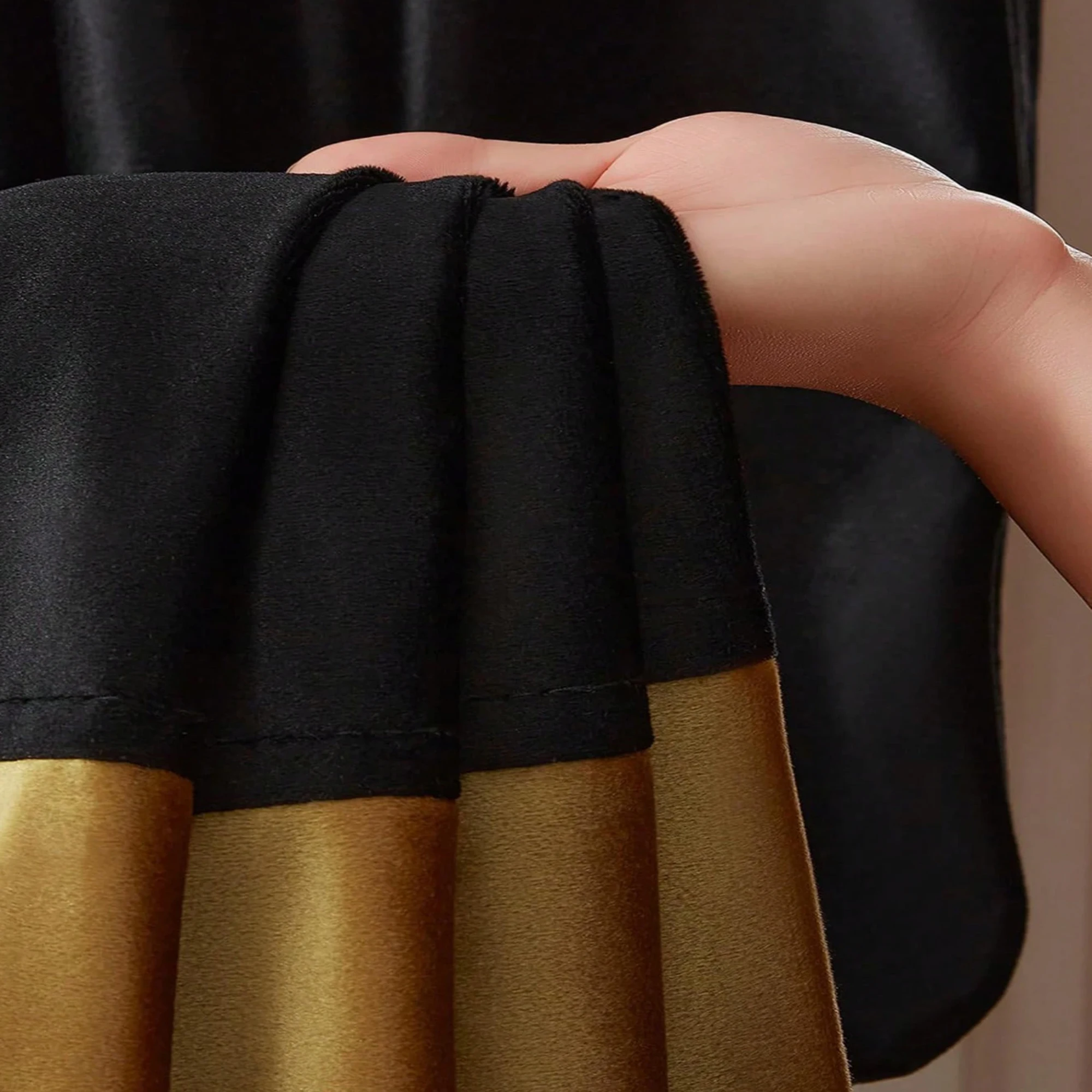 Pour une décoration intérieure harmonieuse, le RIDEAU NOIR ET OR s’adapte à différents styles. Que votre mobilier soit moderne ou classique, ses couleurs polyvalentes s’accordent parfaitement, ajoutant une touche de sophistication et de modernité.
