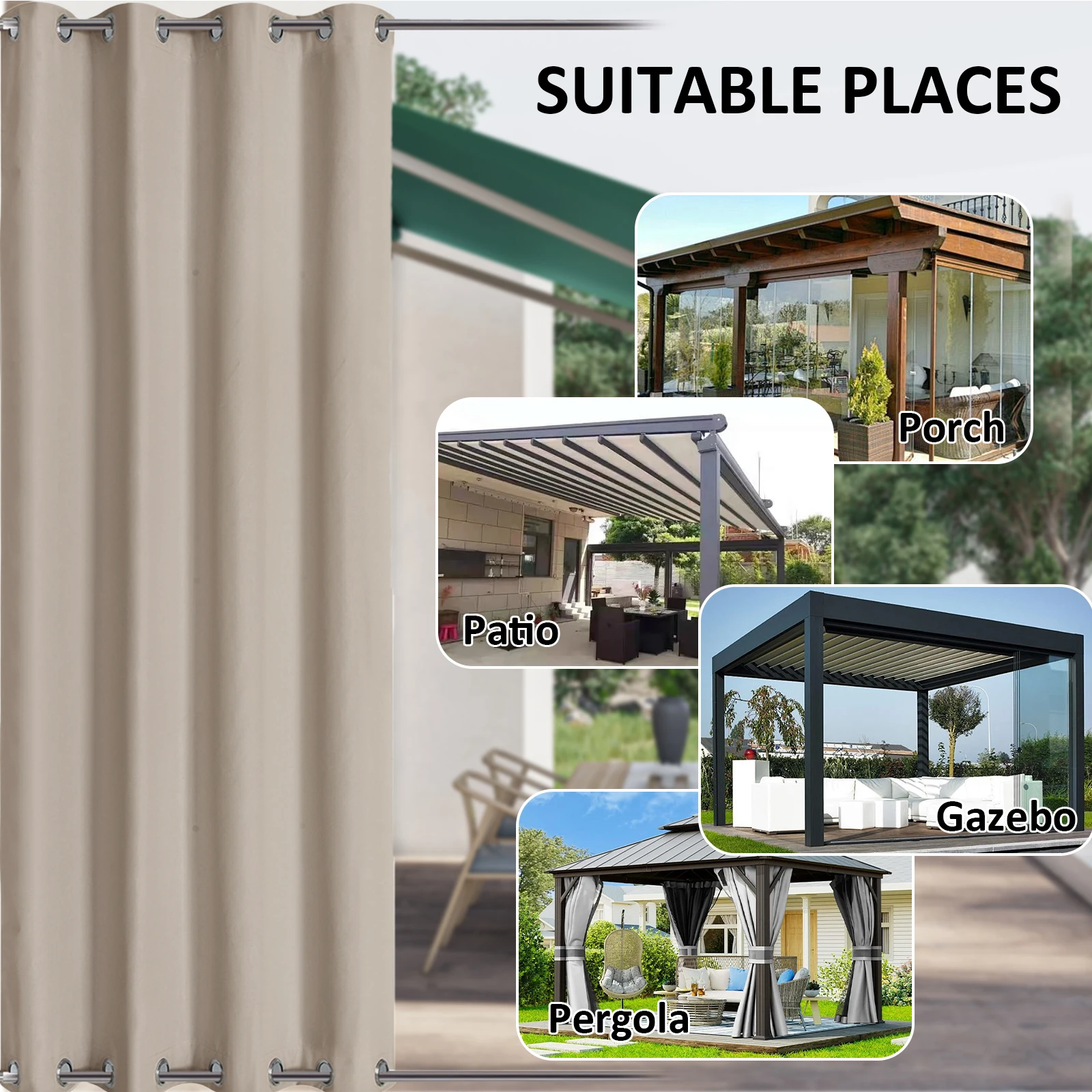 Qu’il s’agisse de jardins, de patios ou de vérandas, le rideau pergola extérieur s’intègre harmonieusement dans divers environnements. Sa palette de couleurs variée vous offre la flexibilité de choisir l’apparence qui correspond le mieux à votre espace de vie. Il ne fait aucun doute que ce rideau est bien plus qu’un simple accessoire de jardin; c’est aussi une pièce maîtresse qui apporte du caractère à votre extérieur.